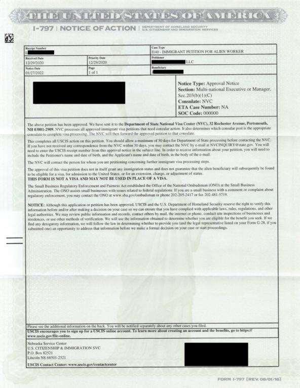 经过专业评估,J先生于2022年末启动了美国EB-1C跨国企业高管移民申请,并在2024年初成功获批。在此期间,我们专业的服务团队全程跟进,从排期进度把控到移民签证申请指导,再到登陆美国换取绿卡等关键环节,为J先生提供了全方位的专业支持。最终,J先生不仅顺利实现了企业国际化战略布局,更成功为全家获得了美国永久居留权,在事业发展和家庭规划上实现了双重突破。